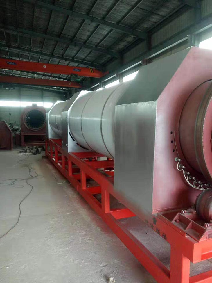我們解決其技術(shù)問(wèn)題所采用的技術(shù)方案是:一種新型環(huán)保節(jié)能熱風(fēng)炒爐,由電源供電,包括第一燃燒室、第二燃燒室、熱風(fēng)炒爐滾筒、存料機(jī)、自動(dòng)喂料器、出料機(jī)、引風(fēng)機(jī)和排潮風(fēng)機(jī),所述熱風(fēng)炒爐滾筒的入口端通過(guò)自動(dòng)喂料器與所述存料斗連通,所述熱風(fēng)炒爐滾筒的入口端還通過(guò)風(fēng)道與所述排潮風(fēng)機(jī)連通,所述熱風(fēng)炒爐滾筒的出口端與出料機(jī)連通,所述第一燃燒室和第二燃燒室通過(guò)風(fēng)道與引風(fēng)機(jī)連通,所述第一燃燒室和第二燃燒室分別位于所述熱風(fēng)炒爐滾筒的下方,所述熱風(fēng)炒爐滾筒軸心線(xiàn)與水平面形成2°到8°的夾角,所述第一燃燒器和第二燃燒器安裝位置在相應(yīng)燃燒室的前端或者相應(yīng)燃燒室的兩個(gè)側(cè)面。我們?cè)O(shè)備取消了原熱風(fēng)炒爐所配套的單獨(dú)熱風(fēng)爐、彎段風(fēng)道或直段風(fēng)道;在炒爐滾筒下方設(shè)計(jì)安裝兩份熱風(fēng)燃燒室,用燃燒器產(chǎn)生的熱風(fēng)直接對(duì)滾筒進(jìn)行加熱,******限度地縮減了炒爐散熱環(huán)節(jié)和面積,從而實(shí)現(xiàn)炒爐連段式加熱。與現(xiàn)有設(shè)備相比,我們公司設(shè)備充分利用了熱風(fēng)釋放的熱量,減少了熱量損失,單噸油料或糧食加工消耗添人氣甚至能降低到25nm3,降低了17%,節(jié)能降耗效果非常明顯,得到了客戶(hù)的一致好評(píng)。與現(xiàn)有設(shè)備相比,同等日加工量,所配兩臺(tái)燃燒器合計(jì)功率比現(xiàn)有設(shè)備燃燒器功率下降20%-30%,熱風(fēng)設(shè)定溫度有750-800℃下降到400-500℃,明顯延長(zhǎng)了炒爐的使用壽命。第一燃燒室和第二燃燒室的功能各不相同,工作溫度也不一致,第一燃燒室和第二燃燒室能夠?qū)崿F(xiàn)分段加熱溫度控制,更加靈活與合理,安全可靠,便于操作與控制。